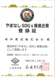山梨県の「やまなしSDGs推進企業」として登録いたしました